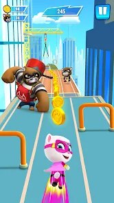 Comparing "Talking Tom Hero Dash" to other endless runners, there's more to this game than just running in a straight line. Unlike classics like "Temple Run" or "Subway Surfers," this game introduces a unique hero twist. The side missions, rescuing friends, and even reconstructing parts of the city as you clear areas set it apart — not just speed, but strategy too. The soundtrack here also deserves a mention; it dynamically shifts with the tempo of the gameplay, adding an extra layer of excitement and immersion. Ultimately, what makes "Talking Tom Hero Dash" stand out is how it seamlessly merges the beloved Talking Tom universe with a fresh, heroic makeover, crafting an experience that's as addictive as it is engaging, and just a little bit cheeky in all the right ways.